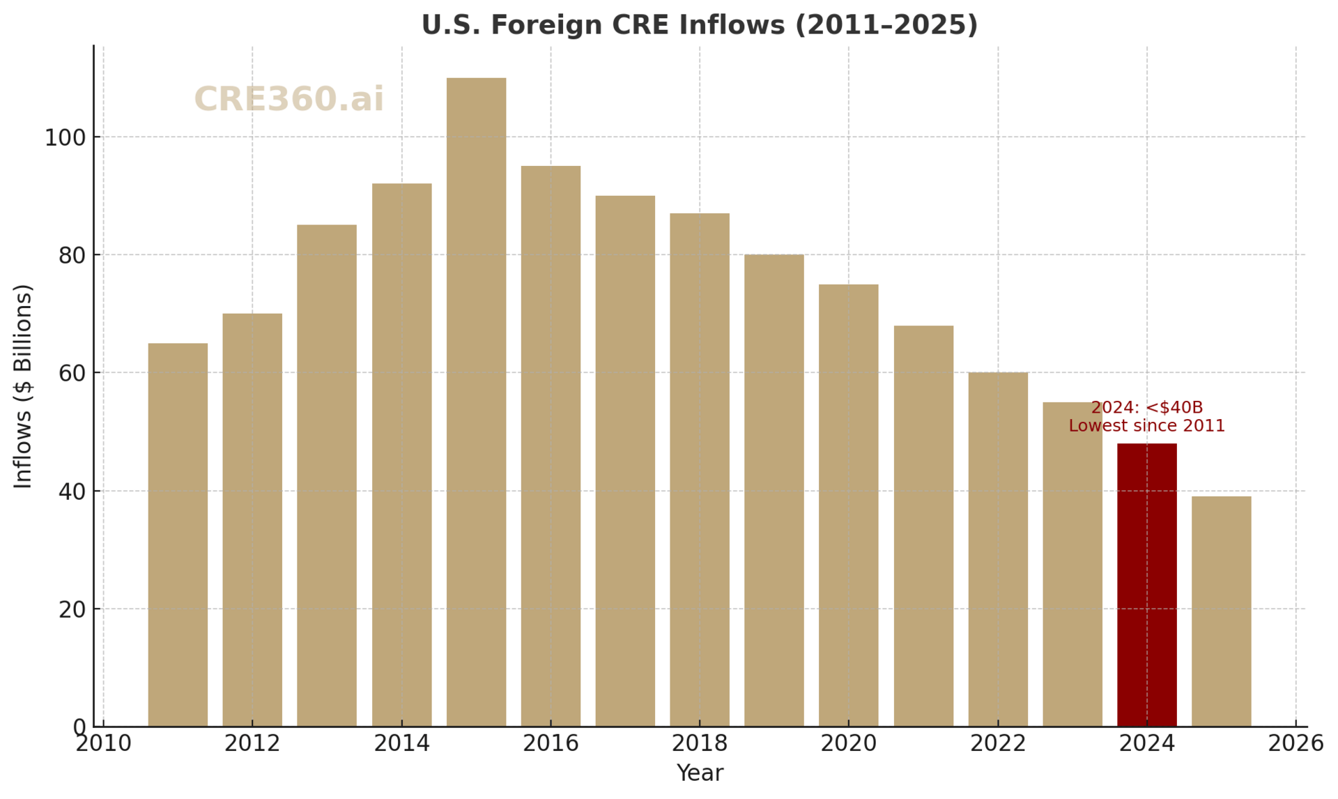 Foreign CRE inflows: <$40B, 2024 (lowest since 2011) — [Source: MSCI].