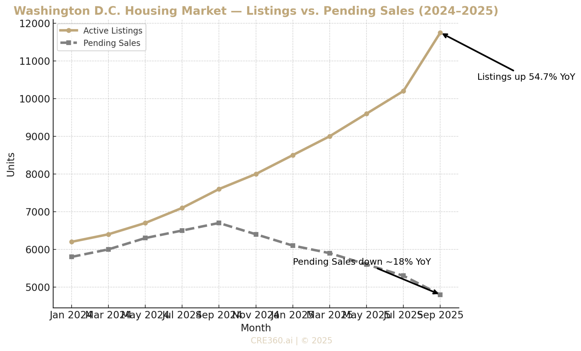 Active listings: +54.7% YoY (Bright MLS, Sept 2025)